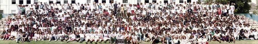 Ryan with his mother and stepfather at his high school graduation in 1984. In a mini-questionnaire filled out in August of that year, Ryan stated his reaction as being that he "thought it would never happen" and was "very happy". By the following fall he stated that he was taking classes on Tuesdays and was preparing to take a commercial shop.